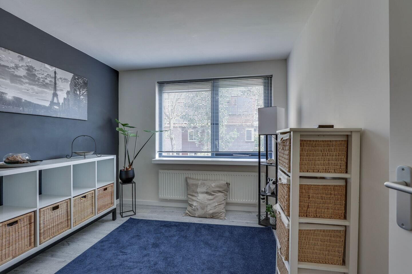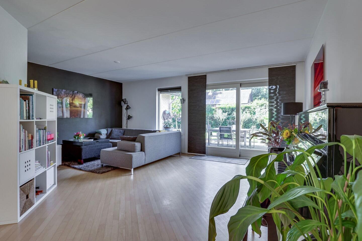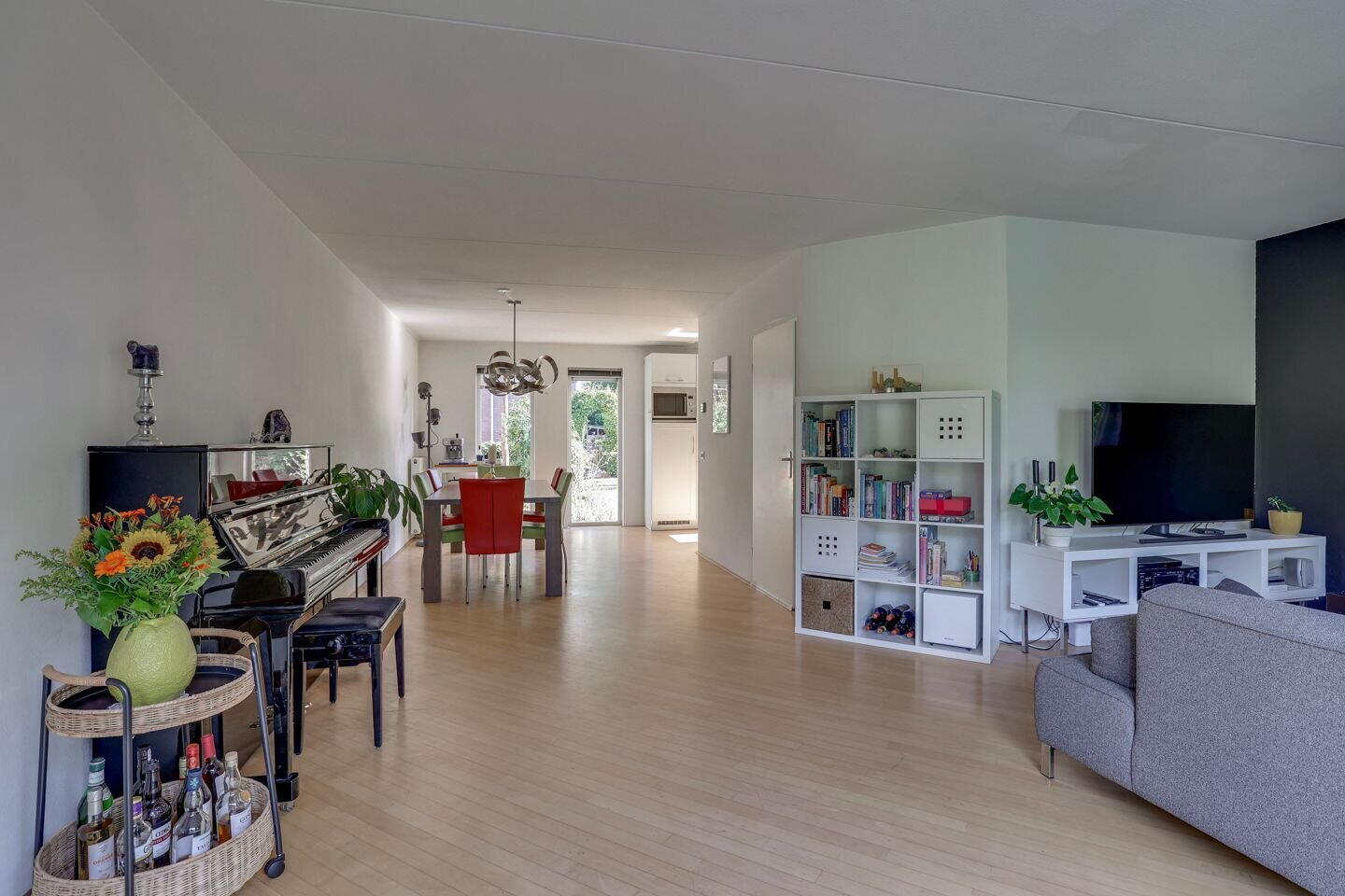 Binnen word je verwelkomd in een lichte en sfeervolle leefruimte. De ruime woonkamer is voorzien van een eiken parketvloer en grote raampartijen die zorgen voor veel daglicht. Via de schuifpui in de woonkamer loop je direct de zonnige en groene achtertuin op het westen in; volop privacy en ideaal om te genieten van de middag- en avondzon. De open keuken is uitgerust met moderne inbouwapparatuur, veel werkruimte en een complete afwerking.