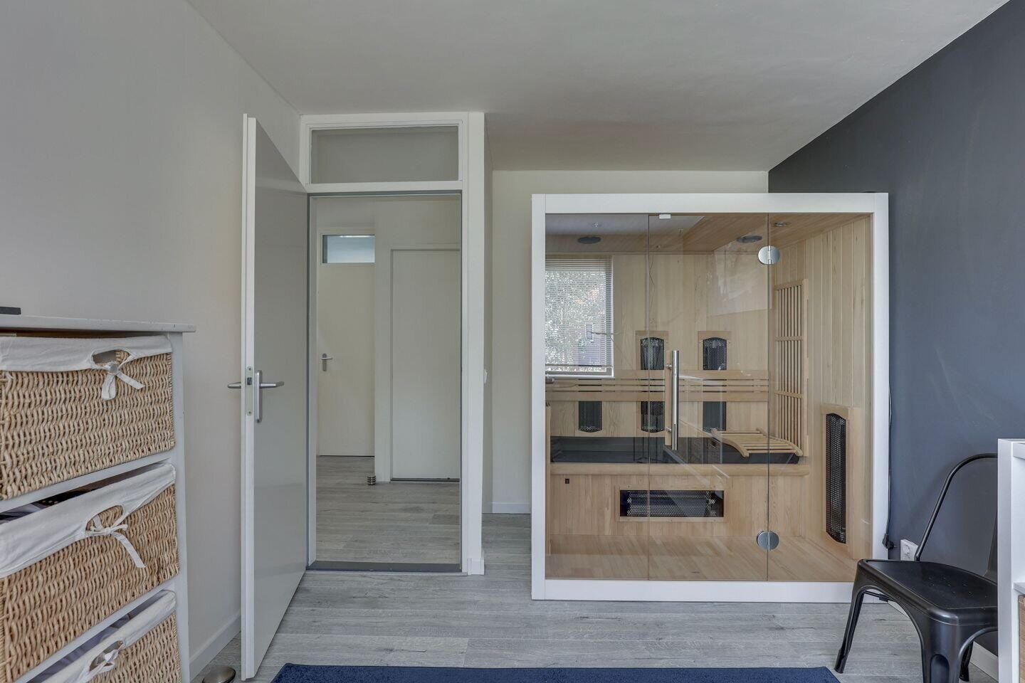 - Sauna, dubbele wastafel, inloopdouche, ligbad, toilet, en vloerverwarming