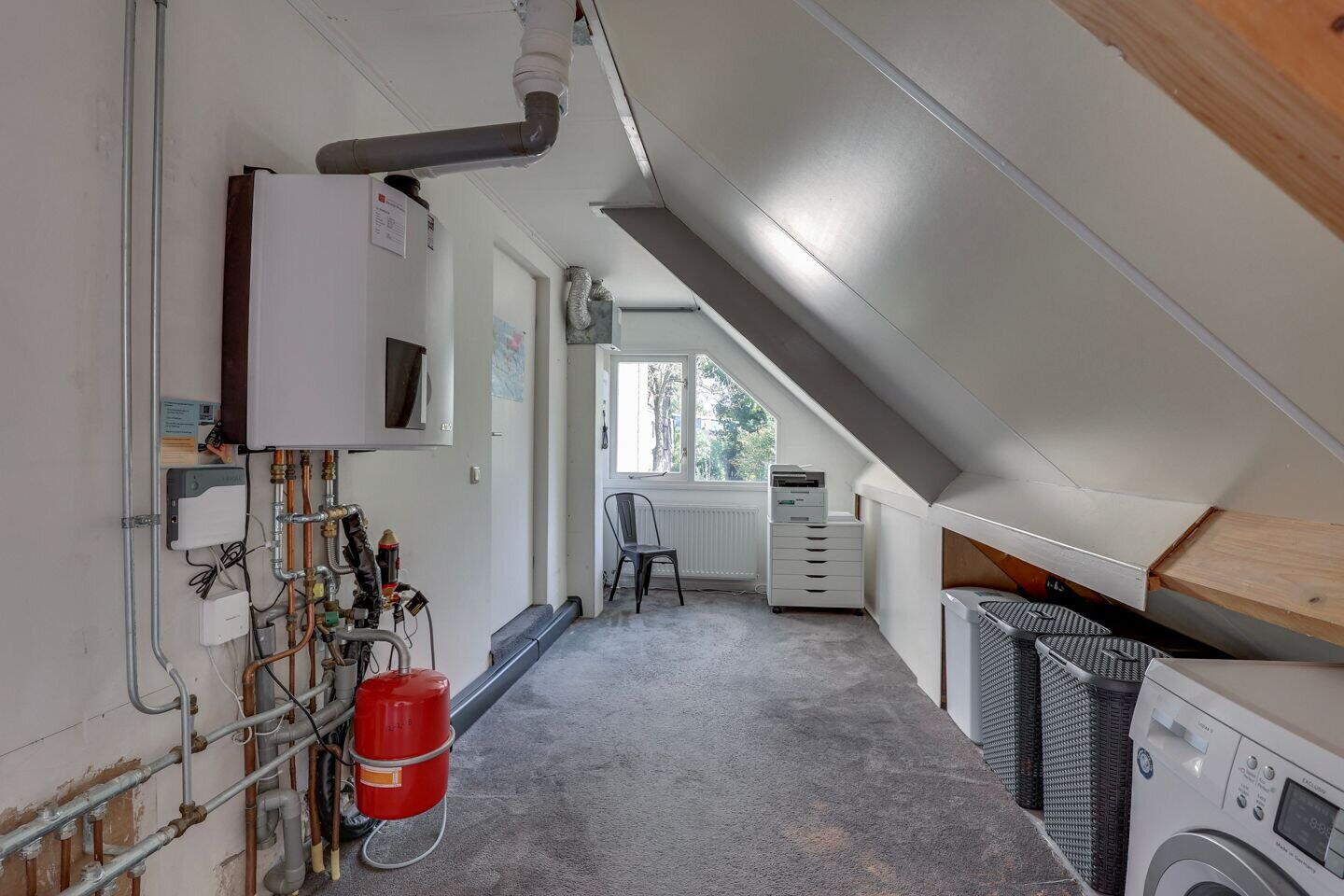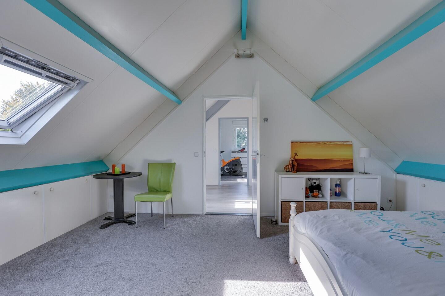Op de verdiepingen bevinden zich in totaal liefst vijf volwaardige slaapkamers, waardoor deze woning uitermate geschikt is voor grotere gezinnen of voor wie extra ruimte zoekt voor werken of hobby’s. De ruime badkamer is comfortabel en verzorgd uitgevoerd met inloopdouche, ligbad, dubbele wastafels, handdoekradiator, vloerverwarming (via retourleiding) en wandcloset. Ook de zolderverdieping is volledig benut en biedt extra leefruimte.